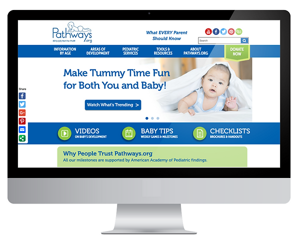Pathways.org is a one-stop resource developed to help new parents track their baby's development. This website is chock full of information - including a custom calendar that populates tips and activities based on your baby's birthdate that we developed in partnership with their pediatric physical, speech, and occupational therapy clinics.